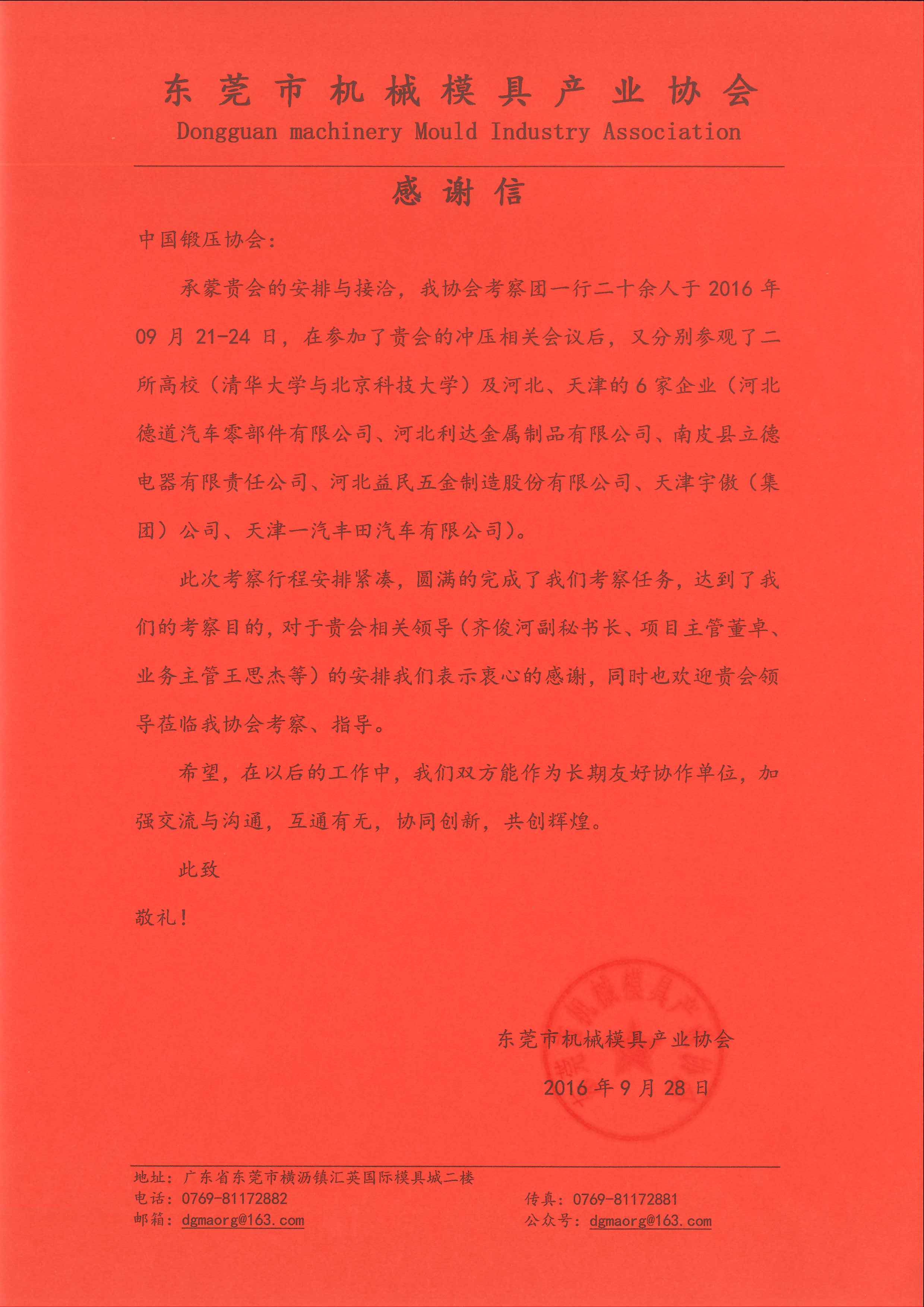 “九月節(jié)”- 東莞市機(jī)械模具產(chǎn)業(yè)協(xié)會(huì)感謝信