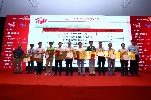 中國(guó)鍛壓協(xié)會(huì)于2011年取得了在鍛壓行業(yè)內(nèi)開(kāi)展信用評(píng)價(jià)工作的許可。信用評(píng)價(jià)是一項(xiàng)以服務(wù)會(huì)員企業(yè)、促進(jìn)行業(yè)自律、提高行業(yè)信用水平和企業(yè)信用風(fēng)險(xiǎn)防范能力為目的的行業(yè)工作。本屆大會(huì)上公布了2016年第五批企業(yè)信用等級(jí)評(píng)價(jià)結(jié)果并進(jìn)行了授牌儀式。