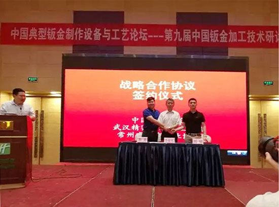 中國(guó)鍛壓協(xié)會(huì)副秘書(shū)長(zhǎng)齊俊河、武漢精密制造行業(yè)協(xié)會(huì)秘書(shū)長(zhǎng)郭勇和常州市鈑金行業(yè)協(xié)會(huì)會(huì)長(zhǎng)劉明共同簽署了戰(zhàn)略合作協(xié)議,今后將群力群策,為服務(wù)好鈑金行業(yè)和企業(yè)共同努力。