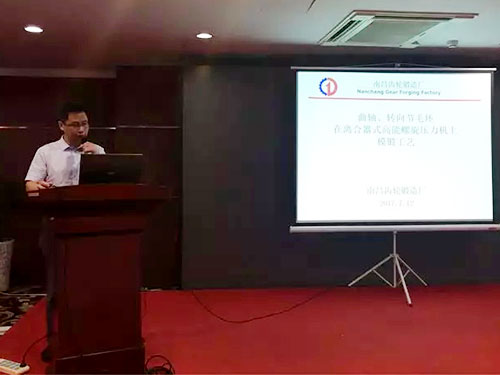 南昌齒輪有限責任公司副總工程師王曙萍從企業(yè)介紹、曲軸,轉向節(jié)毛坯模鍛設備、曲軸毛坯模鍛工藝、轉向節(jié)毛坯模鍛工藝幾方面討論了《曲軸及轉向節(jié)毛坯在高能螺旋壓力機上的熱模鍛工藝》。