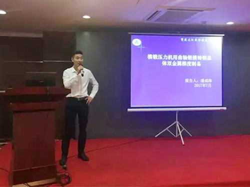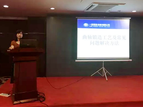 一汽鍛造(吉林)有限公司王丹丹以六缸曲軸為例,介紹了六缸曲軸的生產流程,生產特點,對生產產生的缺陷進行了分析與校正,做了題為《曲軸鍛造工藝與常見問題解決辦法》的報告。