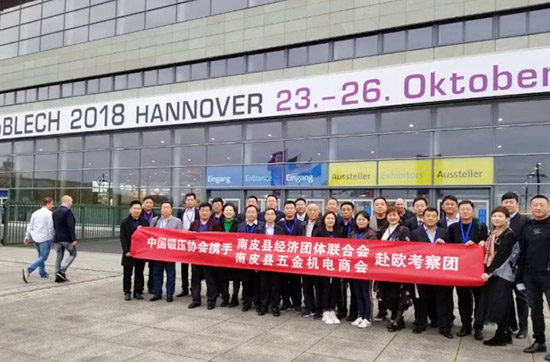 2018年10月25日,中國(guó)鍛壓協(xié)會(huì)赴歐考察團(tuán)一行42人抵達(dá)德國(guó)漢諾威,并于當(dāng)天參觀了第25屆國(guó)際金屬板材加工技術(shù)展覽會(huì)(EuroBLECH 2018)。