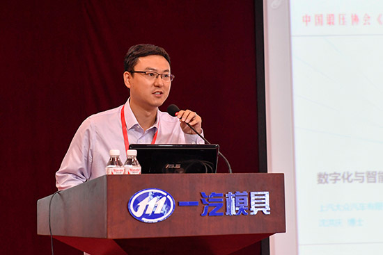上汽大眾汽車有限公司 規(guī)劃部 沈洪慶 博士分享《數(shù)字化與智能化技術(shù)在車身沖壓模具領(lǐng)域的應(yīng)用》。沈博士從“車身沖壓模具和生產(chǎn)所面臨的問題入手,尋求數(shù)字化和智能化技術(shù)解決方案,并詳細(xì)介紹了目前模具數(shù)字化、智能化應(yīng)用的典型案例和應(yīng)用方向。如基于曲面分析技術(shù)解決沖壓件表面數(shù)據(jù)缺陷和回彈問題;基于有限元模擬技術(shù)(殼單元),對沖壓批量生產(chǎn)穩(wěn)定性進(jìn)行分析 ;基于有限元模擬技術(shù)(實體單元),對模具及壓機(jī)結(jié)構(gòu)進(jìn)行應(yīng)力應(yīng)變分析 ;壓邊圈定距塊高度智能控制;模具智能加熱系統(tǒng) ;沖壓件智能檢測等。指出了當(dāng)前的不足及未來的市場需求。