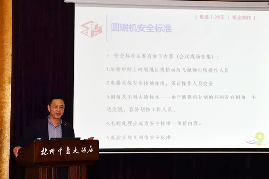 8日上午八點半,第五屆鍛造鋸切設(shè)備商聯(lián)誼座談會正式拉開序幕。中國鍛壓協(xié)會副理事長 韓木林先生為參會企業(yè)解讀團體標(biāo)準(zhǔn)的重要意義。