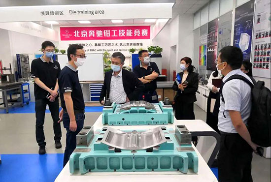 會談結束后,張金秘書長一行認真參觀了“徐洪海創(chuàng)新工作室”,對于工作室的發(fā)展建設成果及未來規(guī)劃給予了高度評價和肯定。依托于“徐洪海創(chuàng)新工作室”,北京奔馳完成了翼子板落料模氣動磁輥輸出機構改進、模具壓料器拉桿螺栓及螺母改進、模具生產(chǎn)標識改進等多個重點項目,推進了沖壓工廠技術改造,培養(yǎng)了高技能后備人才,為北京奔馳沖壓工廠快速發(fā)展、走向卓越注入了不竭動能。