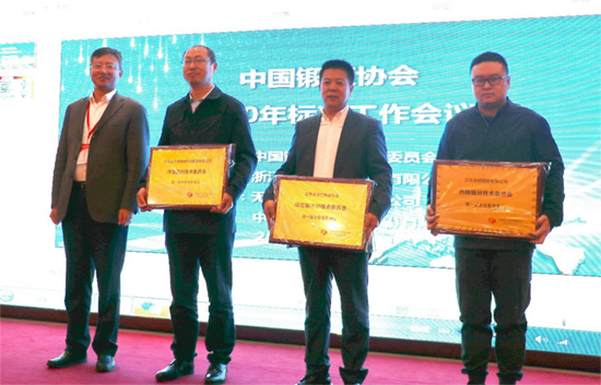中國鍛壓協(xié)會(huì)理事長夏漢關(guān)先生向第一批成立的分技術(shù)委員會(huì)的三家企業(yè)頒發(fā)證牌。