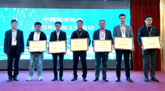 中國鍛壓協(xié)會(huì)輪值理事長談偉光先生給2020年立項(xiàng)標(biāo)準(zhǔn)的牽頭企業(yè)授牌。