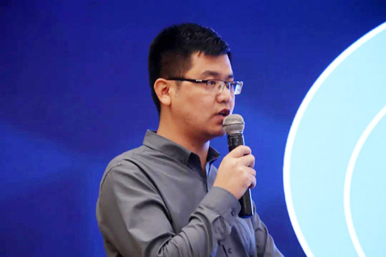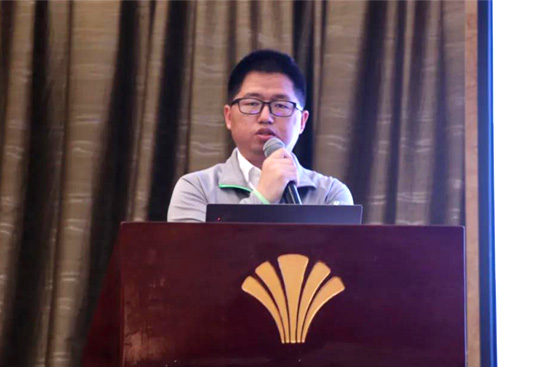 格力電器(珠海)有限公司自動化主管蔣鑫強向大家介紹“以三次元為導向的大噸位雙機聯(lián)動自動化生產模式的探究”。