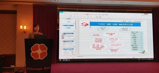 中電科技(三河)精密制造有限責任公司李前總經(jīng)理向與會嘉賓介紹“十四五”綱要編制介紹、修改體會與建議。