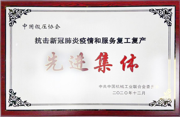12月23日在中國機(jī)械工業(yè)聯(lián)合會(huì)抗擊新冠肺炎疫情和服務(wù)復(fù)工復(fù)產(chǎn)表彰大會(huì)上,中國鍛壓協(xié)會(huì)榮獲抗擊新冠肺炎疫情和服務(wù)復(fù)工復(fù)產(chǎn)先進(jìn)集體稱號(hào)。