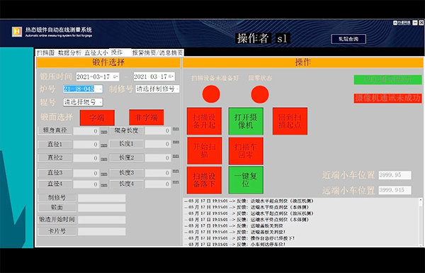 會(huì)議上,行者科技(沈陽(yáng))有限公司介紹了具有自主知識(shí)產(chǎn)權(quán)的“大型鍛件在線視覺(jué)測(cè)量系統(tǒng)”。該系統(tǒng)能夠克服大型自由鍛造機(jī)生產(chǎn)現(xiàn)場(chǎng)高溫、高振動(dòng)、粉塵嚴(yán)重的特殊環(huán)境,利用激光結(jié)構(gòu)光技術(shù),實(shí)現(xiàn)了熱態(tài)鍛件在線尺寸的精度測(cè)量,為熱態(tài)大型鍛件實(shí)現(xiàn)數(shù)字化制造提供了基礎(chǔ)條件。