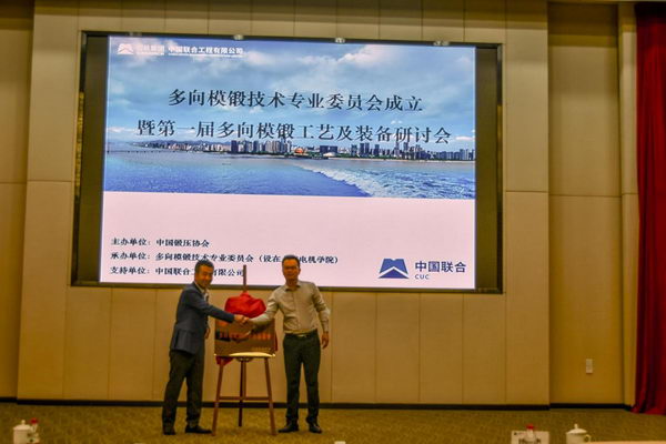 韓木林副理事長(zhǎng)同楊俊杰副校長(zhǎng)一同主持“多向模鍛技術(shù)委員會(huì)”揭牌儀式