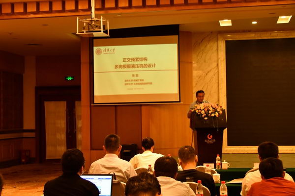 清華大學(xué)張磊副教授向大家介紹《正交預(yù)緊結(jié)構(gòu)多向模鍛液壓機(jī)的設(shè)計(jì)》