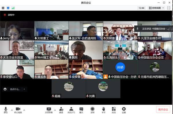 由于疫情防控原因,本次標(biāo)準(zhǔn)評(píng)審會(huì)議是中國(guó)鍛壓協(xié)會(huì)首次采取線上會(huì)議形式召開。