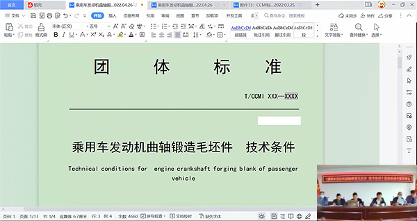 2022年5月20日,由中國鍛壓協(xié)會(huì)組織的《乘用車發(fā)動(dòng)機(jī)曲軸鍛造毛坯件技術(shù)條件》團(tuán)體標(biāo)準(zhǔn)專家評(píng)審會(huì)視頻會(huì)議順利召開。