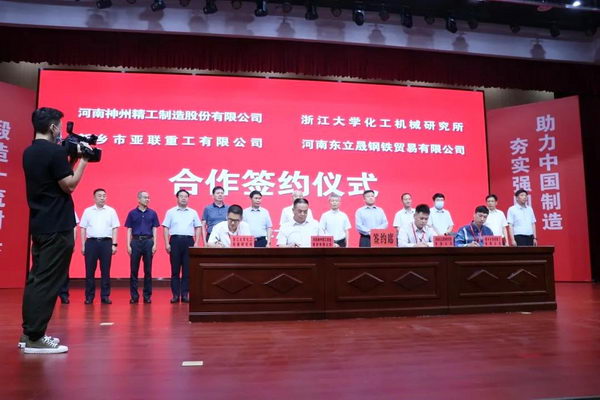 新鄉(xiāng)縣是我國封頭加工制造重要基地之一,有著數(shù)十家封頭專業(yè)生產(chǎn)廠及模具等相關(guān)配套企業(yè),被譽為“中國封頭之都”。此次中國鍛壓協(xié)會牽手新鄉(xiāng)縣政府,簽訂戰(zhàn)略合作協(xié)議,是整合各方資源共建新鄉(xiāng)封頭產(chǎn)業(yè)的重要舉措。同時,河南神州精工制造股份有限公司牽手浙江大學(xué)化工機械研究所,亞聯(lián)重工牽手河南東立晟鋼鐵貿(mào)易有限公司。