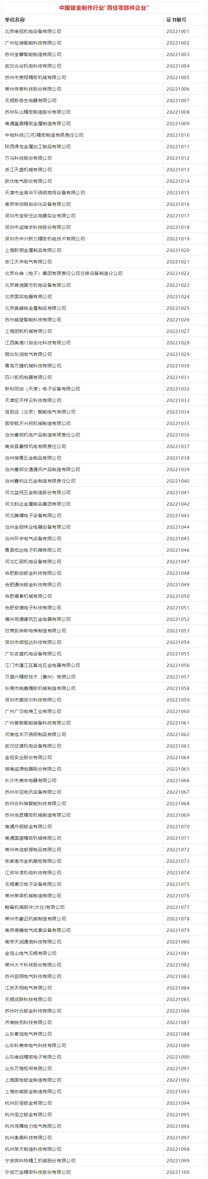 中國(guó)鍛壓協(xié)會(huì)為中國(guó)鈑金制作行業(yè)“百佳零部件企業(yè)”代表頒發(fā)證書(shū)。