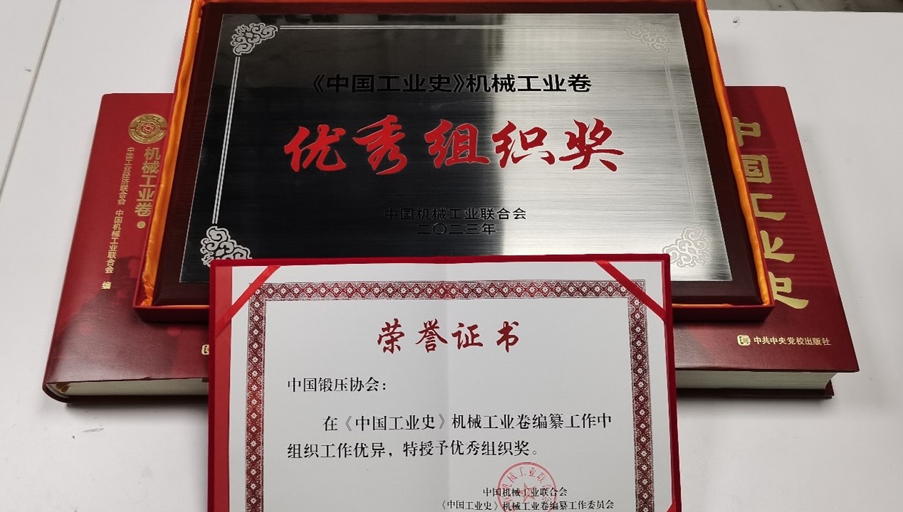 中國鍛壓協(xié)會作為機械行業(yè)的一員,作為鍛壓行業(yè)的積極參與者,責(zé)無旁貸的承擔(dān)起了機械卷的部分編纂工作。自立項以來,張金秘書長高度重視,親自領(lǐng)導(dǎo)、部署和參與相關(guān)工作,定期階段性地組織行業(yè)內(nèi)外專家開展專題研討會,與專家學(xué)者充分交換意見。即使在疫情期間,張金秘書長也克服重重困難,堅持開展線上研討、工作不停歇,確保了協(xié)會相關(guān)編纂工作按時保質(zhì)順利完成。為表彰在編纂工作中組織工作優(yōu)異的單位,中機聯(lián)授予中國鍛壓協(xié)會等25家單位《中國工業(yè)史》機械工業(yè)卷“優(yōu)秀組織獎”。此項殊榮,不僅是對中國鍛壓協(xié)會工作的充分肯定,也是對鍛壓行業(yè)全體同仁團結(jié)奮進、無私貢獻精神的高度贊譽。