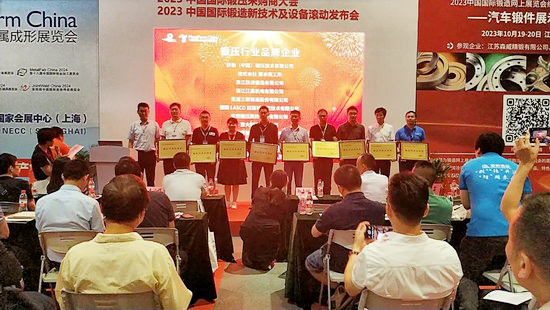 隨后,大會主辦方在現場舉辦了鍛壓行業(yè)品牌企業(yè)頒獎儀式,由中國鍛壓協會副秘書長白玉冰先生為獲獎企業(yè)頒獎。