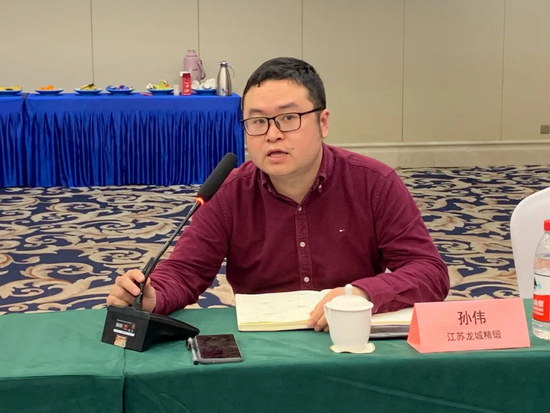 江蘇龍城精鍛集團有限公司科協(xié)秘書長孫偉先生做報告《標(biāo)準(zhǔn)起草和專利獎申報實踐經(jīng)驗分享》。