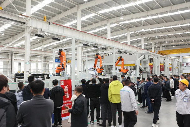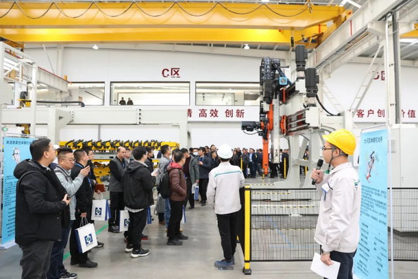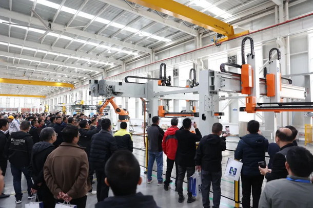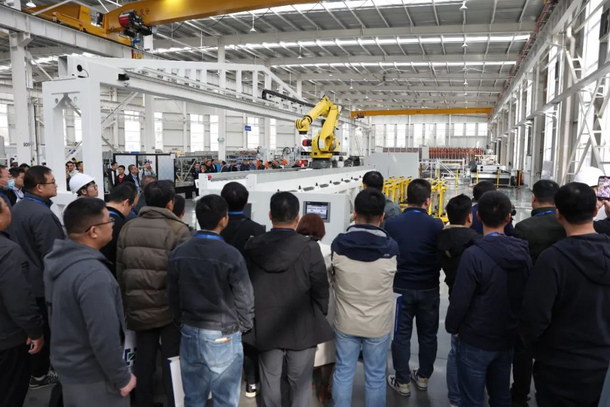 10日上午,參加本次論壇的代表在濟(jì)南昊中自動(dòng)化有限公司 總經(jīng)理 何剛先生 的帶領(lǐng)下,現(xiàn)場(chǎng)參觀了昊中最新研發(fā)18SPM單臂沖壓線自動(dòng)化系統(tǒng)、自動(dòng)上料系統(tǒng)、自動(dòng)裝箱系統(tǒng)、大間距單臂、多工位、熱成型機(jī)械手、熱成型自動(dòng)裝箱、干式清洗機(jī)、在線質(zhì)檢系統(tǒng)等裝備。