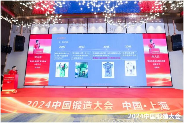 青島浩源益友鍛壓機械有限公司總經(jīng)理宋大臣作《新型高能螺旋壓力機的發(fā)展現(xiàn)狀及應用》報告