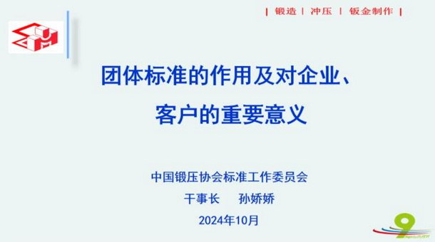 中國鍛壓協(xié)會 孫嬌嬌/標(biāo)準(zhǔn)工作委員會干事長作報告《團(tuán)體標(biāo)準(zhǔn)的作用及對企業(yè)、客戶的重要意義》
