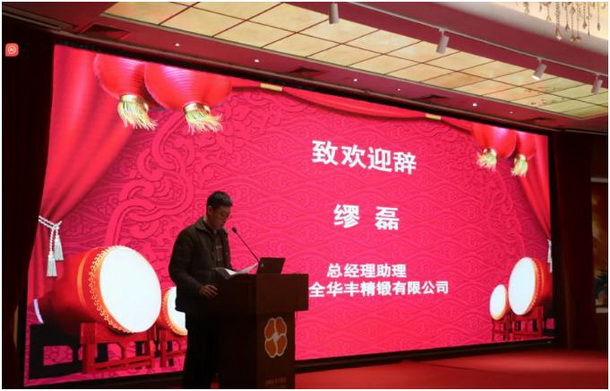 中國鍛壓協(xié)會理事單位、江陰全華豐精鍛有限公司總經(jīng)理助理繆磊致歡迎辭,并做了題為《原材料智能倉儲與自動化下料技術(shù)的應(yīng)用》的報告,闡述了下料自動化管理的重要性。