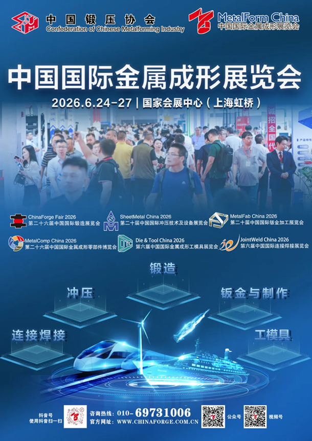 2026年中國國際金屬成形展覽會將于2026年6月24-27日繼續(xù)在國家會展中心(上海)舉辦,期待每一個行業(yè)同仁能夠積極參與,期待我們再次相聚!