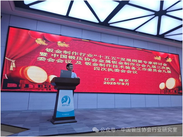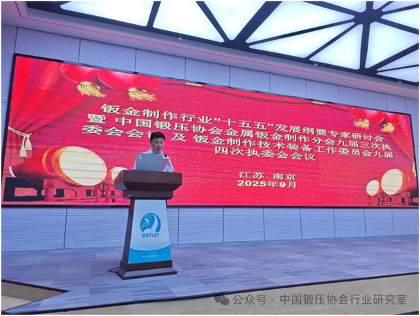 2025年是“十四五”發(fā)展規(guī)劃的收官之年,也是“十五五”規(guī)劃的謀篇布局之年,為了保證鈑金制作行業(yè)的高質(zhì)量發(fā)展,根據(jù)中共中央社會(huì)工作部、國(guó)務(wù)院國(guó)資委、發(fā)改委、工信部及中國(guó)機(jī)械聯(lián)等相關(guān)部門的總體部署和要求,中國(guó)鍛壓協(xié)會(huì)組織開展了《鈑金制作行業(yè)“十五五”發(fā)展綱要》調(diào)研和編制工作。2025年9月3-4日,由中國(guó)鍛壓協(xié)會(huì)主辦,南京埃斯頓自動(dòng)化股份有限公司和南京藍(lán)昊智能科技有限公司承辦的鈑金制作行業(yè)“十五五”發(fā)展綱要專家研討會(huì)暨中國(guó)鍛壓協(xié)會(huì)金屬鈑金制作分會(huì)九屆三次執(zhí)委會(huì)會(huì)議及鈑金制作技術(shù)裝備工作委員會(huì)九屆四次執(zhí)委會(huì)會(huì)議在南京成功舉辦。來(lái)自全國(guó)各地的60余位鈑金行業(yè)精英參加了本次會(huì)議。