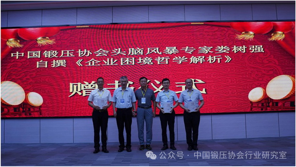 會(huì)上,中國(guó)鍛壓協(xié)會(huì)頭腦風(fēng)暴專家婁樹強(qiáng)先生向與會(huì)代表贈(zèng)送了自己撰寫的《企業(yè)困境哲學(xué)解析》書籍。