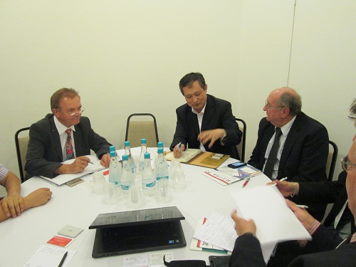 張金秘書長(zhǎng)與大會(huì)主席及福斯?jié)櫥凸敬碓谥邪托⌒驼搲辖涣?IMG border=0 src="http://www.nimbusmice.cn/UploadFile/201211615156531.jpg"> 中國(guó)代表與大會(huì)主席合影留念