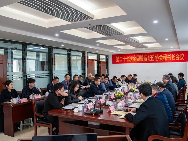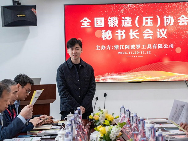 2024年11月21日,由中國鍛壓協(xié)會主辦,浙江阿波羅工具有限公司承辦的第二十七次全國鍛造(壓)協(xié)會秘書長會議在浙江縉云圓滿召開。會議主題為“凝聚力量、助力行業(yè)發(fā)展”,旨在深入貫徹習(xí)近平新時代中國特色社會主義思想,全面落實黨的二十大和二十屆三中全會精神,同時就鍛壓行業(yè)“十五五”規(guī)劃進(jìn)行了具有前瞻性的布局與討論。會議共有來自全國14家地方行業(yè)協(xié)會和中國鍛壓協(xié)會的22人出席,浙江阿波羅工具有限公司樓群英董事長、王樓鋒總經(jīng)理、王志偉技術(shù)總監(jiān)、潛菲菲副總經(jīng)理列席會議。