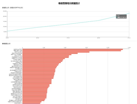 維德直播與4月25日正式開播。截至9月15日共開播49場(chǎng),收聽收看人次達(dá)229716人。具體直播內(nèi)容及收看人次統(tǒng)計(jì)如下: